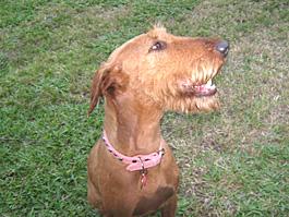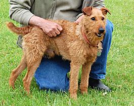 Riley is a 6 year old neutered male Irish Terrier. He's in his prime! Riley is a very sweet boy who loves people. and he gets along well with other dogs. He needs a home without small fuzzy critters. The yard should be fenced for his safety. Riley does have some allergy issues, and so will have to be kept on a high quality diet, and be kept flea free.